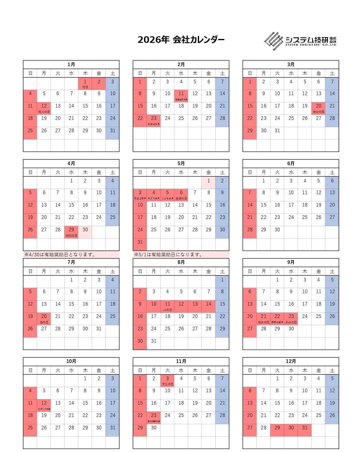 会社カレンダー